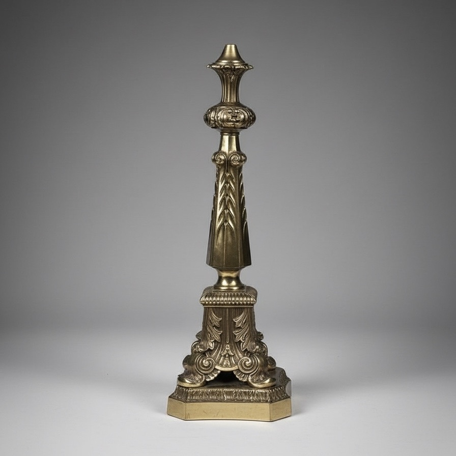 with leaf-cast stem and leaf-cast base on scroll feet and rectangular plinth