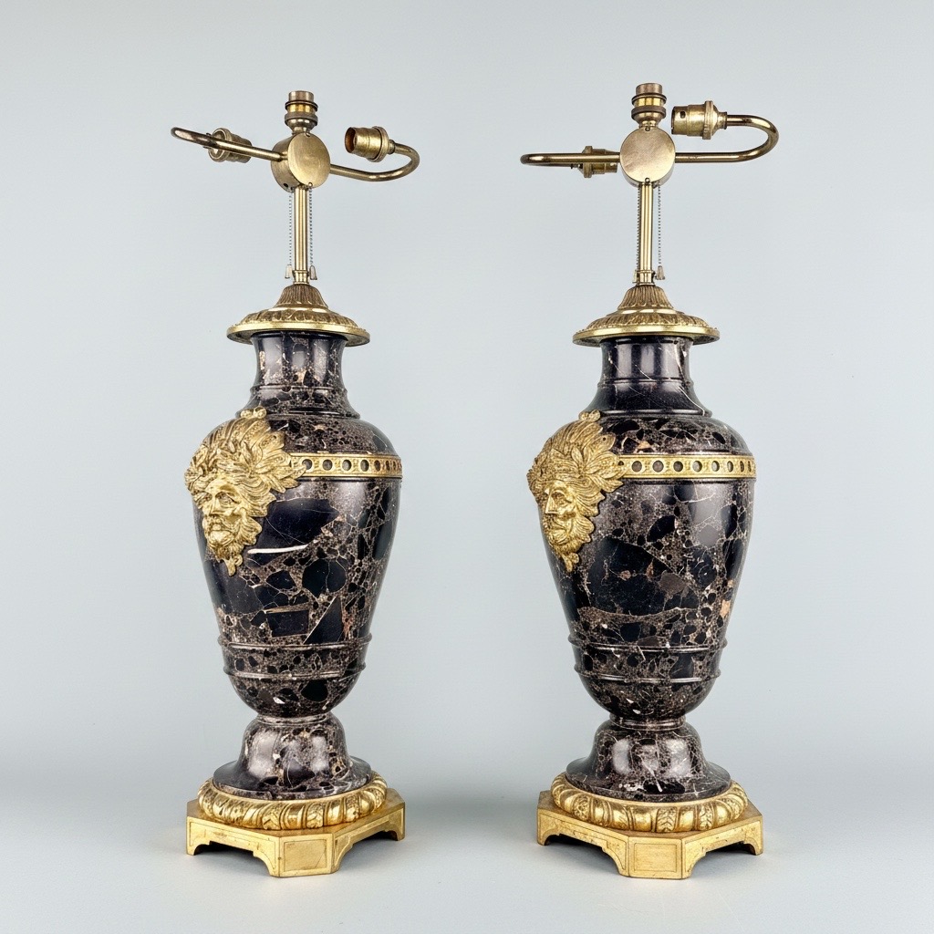 Pair of Antique Ormolu Mounted Marble Lamps